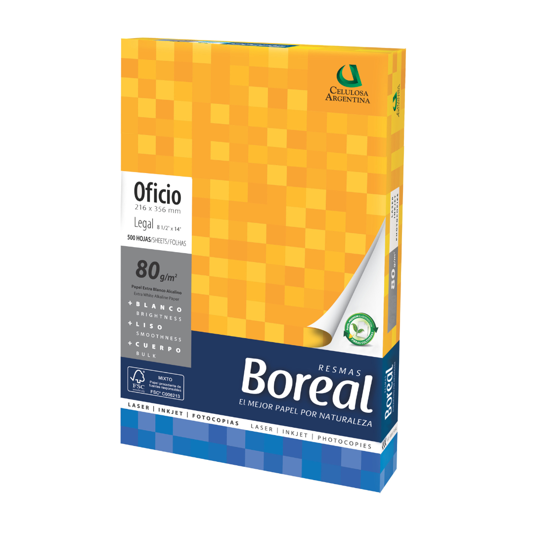 📦 Presentación: Caja con 5 resmas formato Cut Size Oficio Legal.